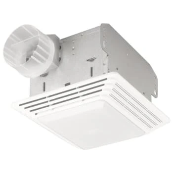 - Broan 70 CFM Ceiling Exhaust Fan with Light comes in 23 gauge steel construction for added durability. Fan features designer styled white polymeric 10-5/8″ x 11-1/8″ white rectangular grille that adds decor. Fan has built-in damper that prevents backdrafts and eradicate metallic clatter. It comes with 2 bowler wheels, each powered by its own permanently lubricated plug-in motor and delivers high-efficiency performance. It allows easy installation by adjustable, slotted mounting brackets that spans up to 24″.