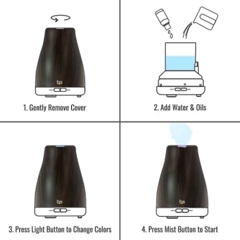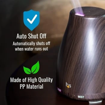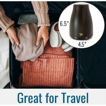 - AROMATHERAPY DIFFUSER compact design is sleek and modern. The beautiful and modern wood grain base complements any room. It is the perfect apartment essential, dorm essential or new home essential to bring peace and tranquility anywhere